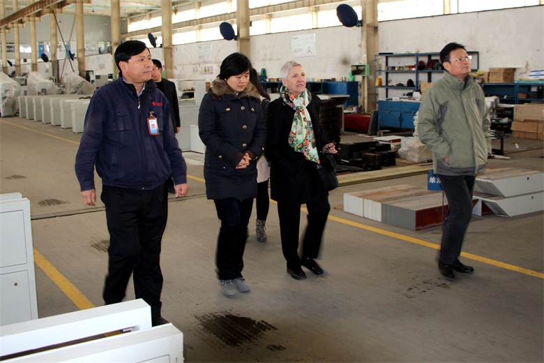在參觀鋁機總裝車間時,Bernice Herris副校長對我公司目前處于國內領先水平的鋁機產品表示了充分肯定,并對其研發(fā)、工藝流程進行了詳細詢問,公司生產副總亓愛林對考察團提出的問題一一作了解答。