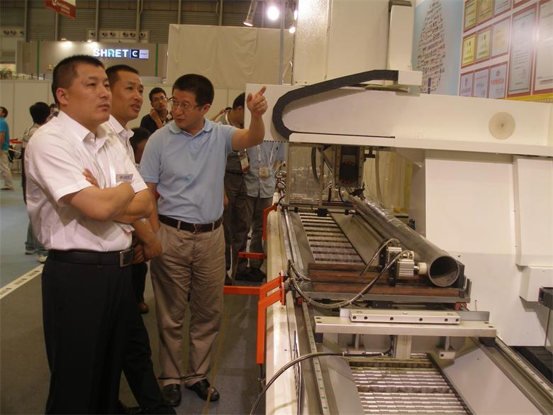本屆展會主推的新型高速四軸數(shù)控加工中心,吸引了全國各地的客商前來觀展。