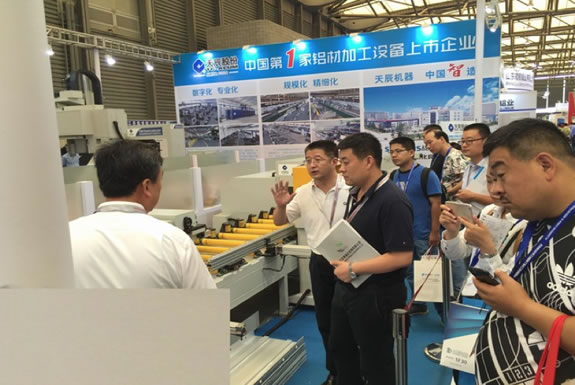 作為國內(nèi)第一家鋁材加工設(shè)備上市企業(yè),天辰股份緊跟國內(nèi)外工業(yè)鋁行業(yè)發(fā)展潮流,始終致力于高端鋁加工設(shè)備的研發(fā)與制造,此次天辰股份展出的鋁模板鋸沖自動生產(chǎn)線及數(shù)控五軸龍門加工中心獲得了廣大專業(yè)觀眾及業(yè)內(nèi)參展企業(yè)的一致好評。尤其是自主研發(fā)的國內(nèi)首臺鋁模板鋸沖自動生產(chǎn)線,以其先進的設(shè)計理念、超高的生產(chǎn)效率及大量節(jié)省人工的自動化程度,廣受贊譽。