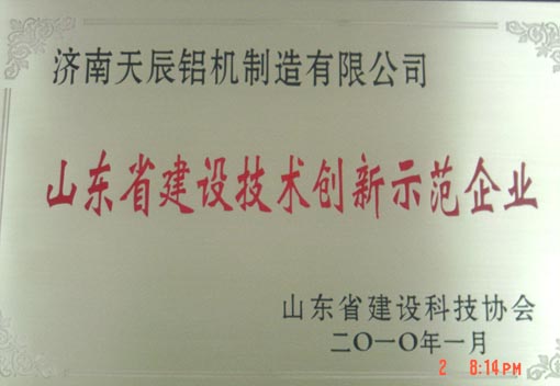 天辰鋁機(jī)公司榮獲山東省建設(shè)技術(shù)創(chuàng)新示范企業(yè)