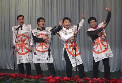 此次聯(lián)歡會(huì)由青春靚麗的新人擔(dān)任主持,聯(lián)歡會(huì)在鋁機(jī)公司趙美東的《歡樂(lè)中國(guó)年》中帷幕,車(chē)庫(kù)公司何琦深情款款的男聲獨(dú)唱《沒(méi)離開(kāi)過(guò)》聽(tīng)得大家意猶未盡;劉文嬋和王佳自編自演的相聲《普通話》妙趣橫生,引得臺(tái)下爆笑不斷;男聲小合唱《換大米進(jìn)行曲》詼諧幽默的表演贏得大家陣陣掌聲;由領(lǐng)導(dǎo)參與《猜成語(yǔ)》的互動(dòng)游戲把現(xiàn)場(chǎng)的氣氛推向了高潮;時(shí)尚動(dòng)感的街舞、情感真摯的自彈自唱《老男孩》,以及超高難度的和聲《威廉退爾序曲》等精彩節(jié)目接二連三目不暇接;壓軸舞蹈《荷塘月色》以其精湛的表演取得了滿場(chǎng)喝彩。