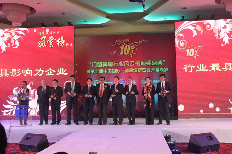 2012年11月23日,由中國建筑金屬結(jié)構(gòu)協(xié)會(huì)主辦的“感恩十年——門窗幕墻行業(yè)風(fēng)云榜評(píng)選”頒獎(jiǎng)盛典在北京舉行。經(jīng)過2個(gè)月的激烈角逐,我公司以絕對(duì)優(yōu)勢(shì)高居加工設(shè)備類榜首,榮獲一呼百應(yīng)大獎(jiǎng)——最具影響力企業(yè)獎(jiǎng)。
